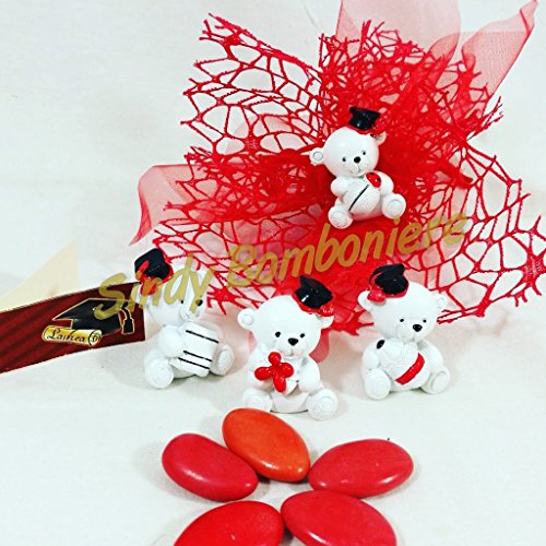 Sindy Bomboniere Bomboniera Laurea con Orsetto in 4 Varianti Diverse, veletto Rosso e Confetti