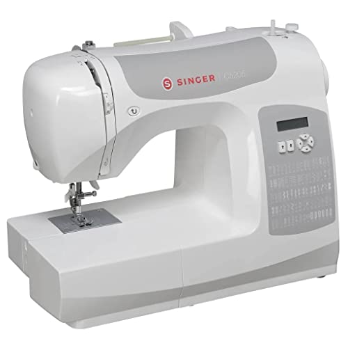 Singer Macchina da cucire a braccio libero C5205 con luce LED con display e tavolo scorrevole, colore: bianco e grigio