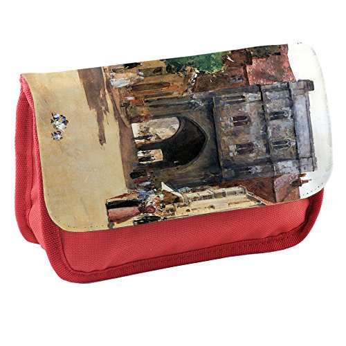 John Singer Sargent Passage In Canterbury, Rosso Scuola Bambini Sublimazione di alta qualità Polyester Astuccio Matita Caso con Design Colorato. 21x13 cm.