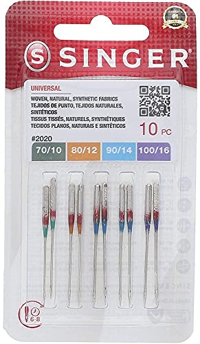 Singer Universal 2020 - Aghi per macchina da cucire, confezione da 10 pezzi, misure assortite 70/10, 80/12, 90/14 e 100/16, include infila aghi grandi