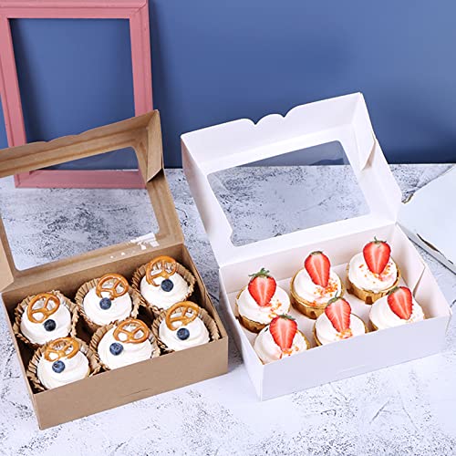 Finestra trasparente e stabile più robusta: c'è una finestra trasparente sulla parte superiore di ogni scatola per cupcake, puoi facilmente vedere il contenuto della scatola. La finestra è incollata saldamente, quindi non preoccuparti di cadere. La carta kraft è stata appositamente ispessita per migliorarne la stabilità.