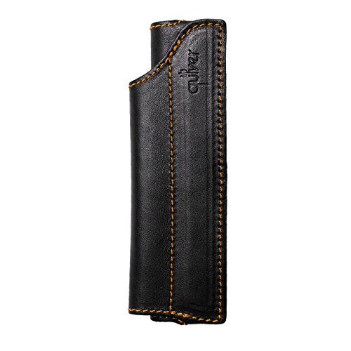 Single-Pen Quiver for Pocket Moleskine Hard-Cover (A6 size) Notebooks, Black with Orange Stitching