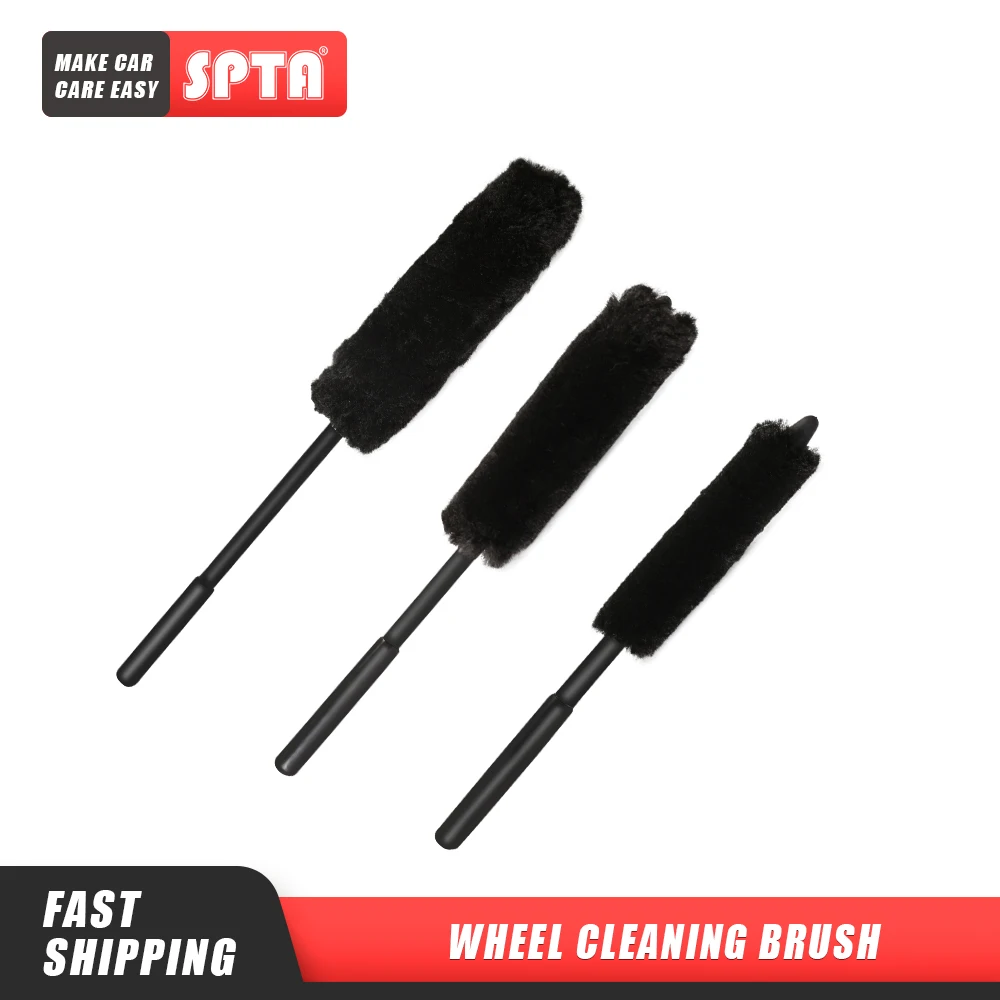 Single Sale - SPTA Auto Car Wheel Hub Cleaning Brush Flexible Long Handle Premium Wool Car Rim Brushes Car Tire Cleaning Brush