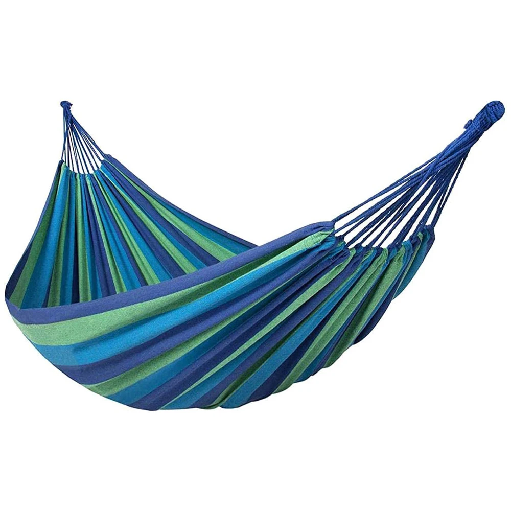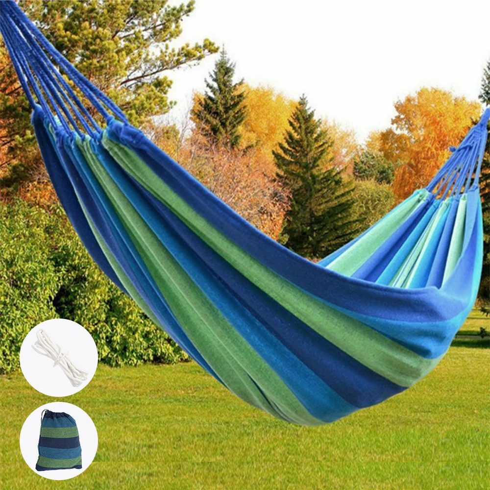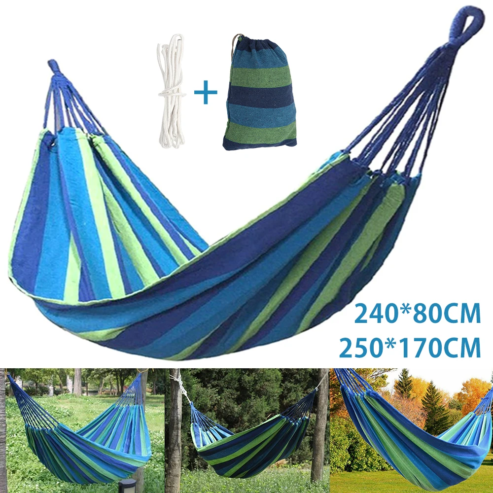 Single/Double Hammock Portable Travel Camping Hanging Canvas Hammock Stripe Hang Bed Canvas Swing Hammocks Outdoor Furniture