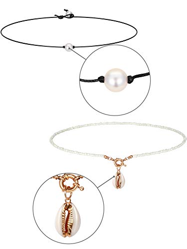 Singolo Collana Girocollo di Perle 3 Collana Singolo Girocollo Pietra Preziosa/Turchese e Collana Turchese Blu su Cordoncino di Cuoio per Donne Ragazze (Perle e Perline)