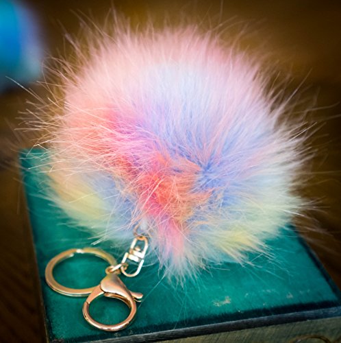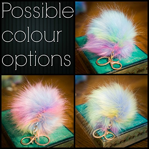 1 X singolo Pompom - 12 cm Hologram casuale Multi Magic Rainbow Large Fluffy Faux/Fake pelliccia procione stile Pom Pom grandi Designer oro chiave spange fascino (Hologram Multi Magic Rainbow)