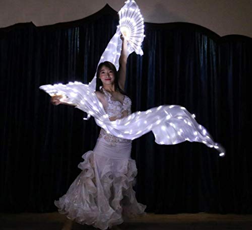 ZYLL 1 Paio (Sinistra + Destra) Vero ventaglio di Danza del Ventre in Vera Seta da Donna, veli Fan al 100% Puntelli per Performance sul palco Velo a LED Bianco Arcobaleno (Ricaricabile),RightHand