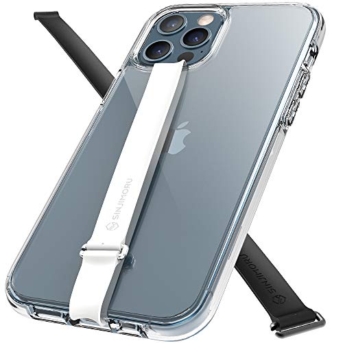 Sinjimoru Custodia trasparente per iPhone 12/12Pro con cinturino in silicone, custodia per iPhone 12/12Pro con 2 supporti per ricarica wireless. AirClo-Loop per iPhone 12/12Pro