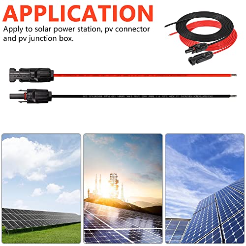 【1 paio di cavi di collegamento solare】: due cavi con connettori solari in plastica rigida, un'estremità è collegata al pannello solare, l'altra estremità è esposta al regolatore di carica solare UL1015 tensione 600 V temperatura nominale fino a 105 ℃ Il cavo è compatibile TUV standard per applicazioni solari fotovoltaiche
