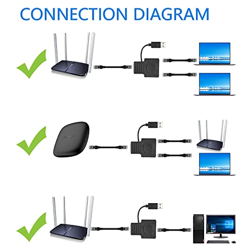 [Plug and Play] SinLoon RJ45 splitter adapter is easy to connect, two devices can access the Internet at the same time, simple and fast, cost-saving, with two network cables (Note: USB power supply, can not be used without connection)