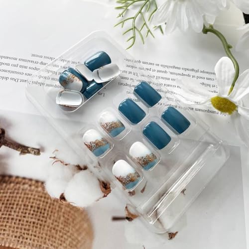 1. 24 unghie finte quadrate blu con copertura completa in 12 misure, 1 lima per unghie, 1 adesivo in gelatina per unghie con 24 pezzi, comode e durevoli.
