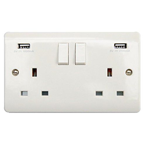 Sinoe V776 Doppia presa da muro con interruttori, certificata BS, 13 Ampere, con prese USB A 3.1, testato da Intertek per i più elevati standard di sicurezza. Prodotto di alta qualità.