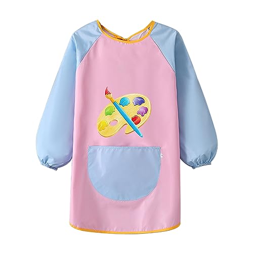 SINRAD Grembiule Pittura Bambini,Grembiule Cucina Bambini,Grembiulino Maniche Lunghe Bambini,Grembiule Per Bambini,Buono Per Disegnare Attività Di Laboratorio Di Dieta Di Cucina (Rosa)