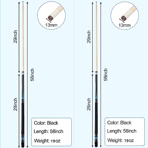 Sinsilvie 13mm 58 Pollici 19 20 Once Stecche Biliardo Pool, Set da 2,1/2 Maple Pool Cue Stick,Bastone da Biliardo da Bar per Uomini e Donne.(Set of 2 Black 19oz)