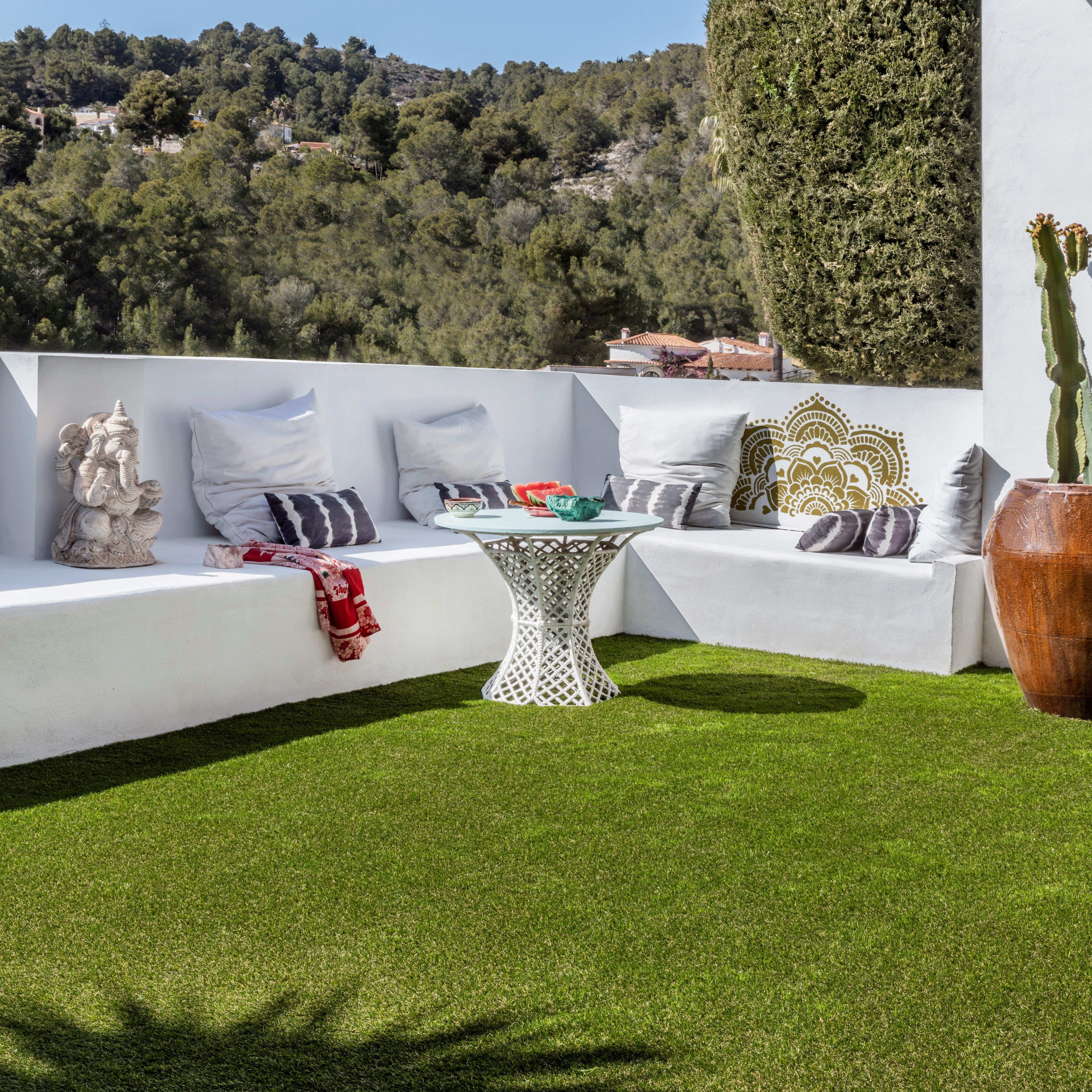 ERBA SINTETICA SANTORINI 35MM H.2 ROT5M. Ideale per l'installazione in giardini e aree più decorative. La differente colorazione dei filamenti gli conferisce un aspetto naturale che lo rende simile al prato naturale