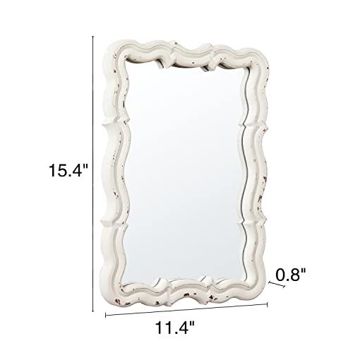 [Specchio da parete vintage] Una buona scelta per rendere la vostra casa luminosa! Uno specchio da parete vintage con cornice in legno che ha una finitura imbiancata per creare un'atmosfera rustica;
