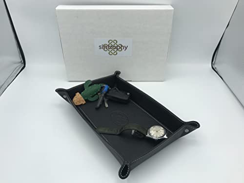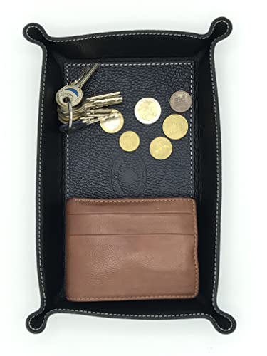 SINTROPHY Svuota Tasche Porta Oggetti, Vera Pelle,Varie Misure,più Colori Svuota Tasche da Ingresso,Organizer Casa,Accessori Scrivania in Vera Pelle Made in Italy (Nero, 20 * 28)