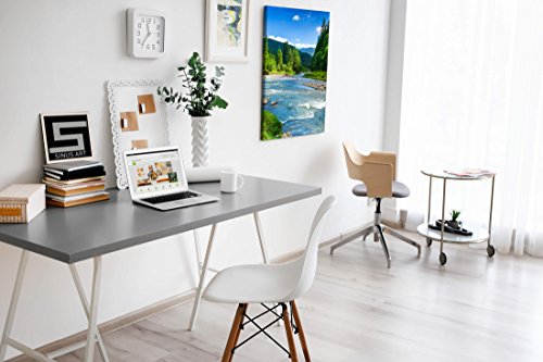 Paul Sinus Art - Quadro su tela, 90 x 60 cm, bellissimo paesaggio con montagne, bosco e ruscello
