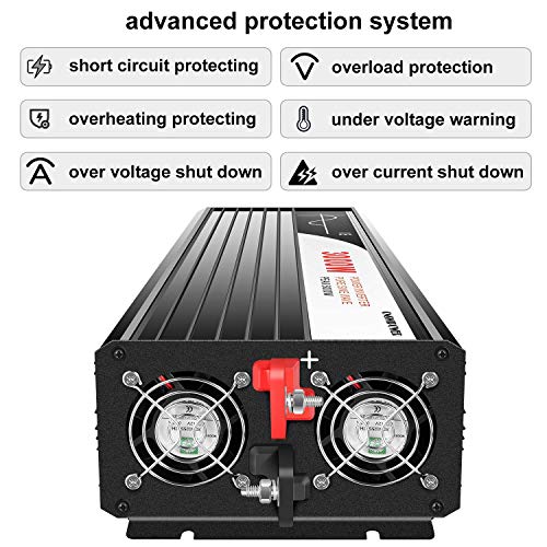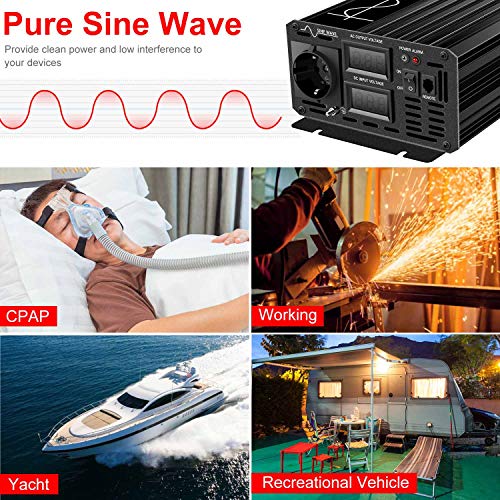 1: ✅ONDA SINUSOIDALE INVERTER-La Potenza Continua di Inverter è di 3000 W, La Potenza di Picco è di 6000 Watt. Trasforma la Tensione Delle Batterie da 12V DC Nell'uscita a 230V AC, Puoi Collegare Direttamente la Spina. Alta Qualità con Certificazione CE e Un Telecomando a Filo (5 Meter in lunghezza).