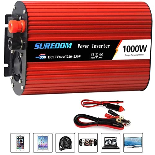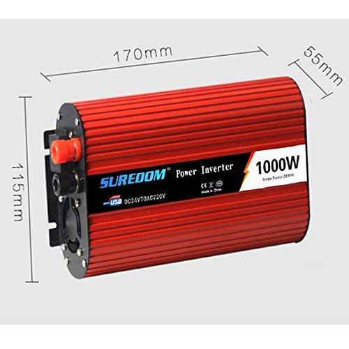 Onda Sinusoidale Pura Inverter 500W 1000W 1500W 2000W Trasformatore da 12V/24V a 220V-240V di Camper Auto Convertitore di Potenza con 2 Porte USB, Presa di alimentazione & Accendisigari (1000W,24V)