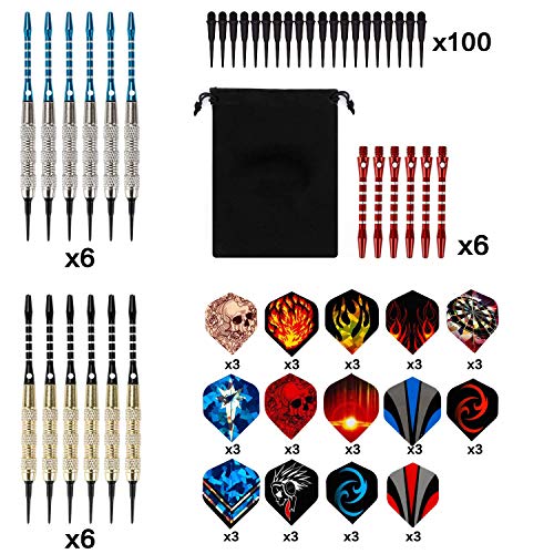 Sinwind Freccette Professionali Punta Plastica 18g, Set di 12 Freccette Morbide per Bersaglio Elettronico con 42 Freccette Voli e 100 Punte Morbide di Freccette + 6 Aste di Alluminio