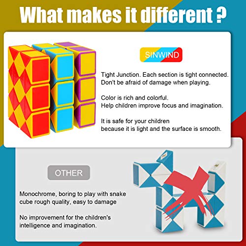 ❤ Regalo fai da te per bambini - I vostri bambini potranno liberare la creatività con il magico gioco di serpenti. I cubetti a forma di serpente Sinwind sono ottimi per l'intelligenza e lo sviluppo dell'immaginazione dei bambini. È un ottimo regalo per i vostri bambini. È sicuro per i vostri bambini, perché è leggero e la superficie è liscia.