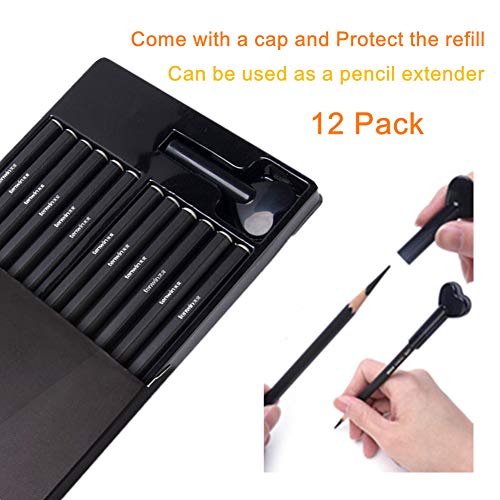 Attenzione: set di 12 matite a carbone, la lunghezza è di 17,6 cm e il diametro è di 7 mm. Attaccato un tappo per penna, può proteggere la ricarica e utilizzare come prolunga per matite