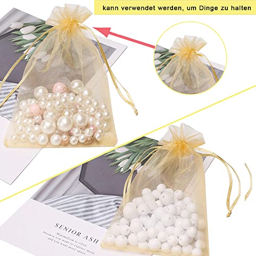 Sinzau - 100 sacchetti in organza per confezionare caramelle, regali, per matrimoni, feste, oro (grande, piccolo)