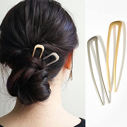 SIOPPKI 4 Pezzi Forcina a Forma di u Forcina in Stile Francese Fermaglio per Capelli con Forcina in Metallo Bacchette a Forcella Punte Perni di Chignon Updo per Donne Ragazze