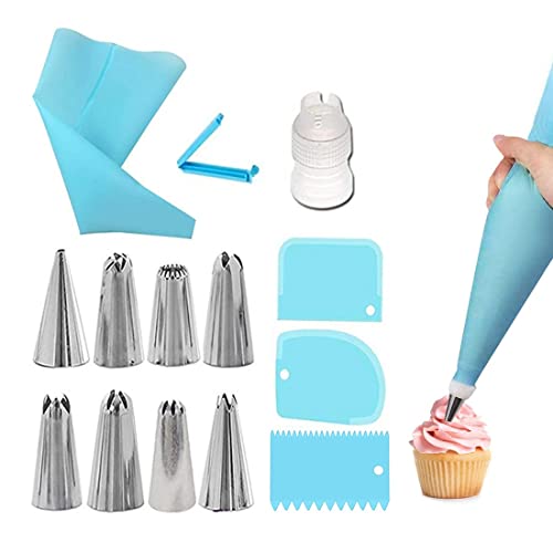 SIOPPKIK Beccucci per Pasticceria, 17Pcs Professional Decorazione Torte Kit Pasticceria Kit Utensili, Strumenti di Cottura, Ideale per Principianti e Utenti Professionali (blu)