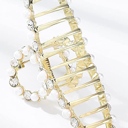 【Bella Ed Elegante】:La pinze per capelli elegante è decorato con perle e diamanti alternativamente, il che è molto bello,adatta alla forma della testa, pratico e conveniente, la molla in metallo è molto flessibile e robusto. Non solo consente di mantenere una bella apparenza ma anche tenere il tuo stile di capelli.