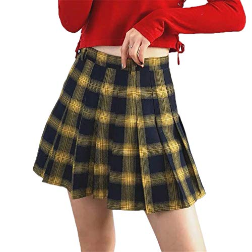 SIPEIEN Gonna a trapezio da donna, stile gotico, a vita alta, plissettata, corta, mini skater, Giallo plissettato, L