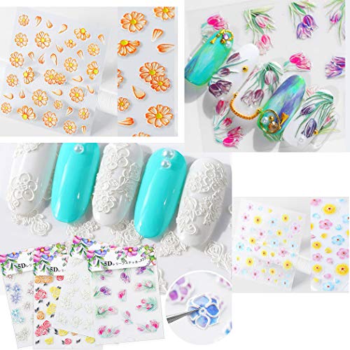 SIPLIV 5d adesivi goffrati stereoscopici per fiori adesivi per unghie decalcomanie fai da te accessori per unghie nail art 5 fogli, A