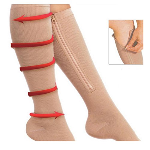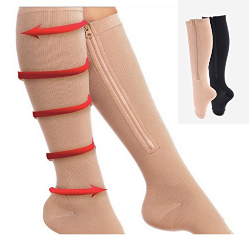Sipliv 2 paia di calze a compressione con cerniera maniche a compressione per le donne, calzini di compressione anti-fatica graduati all'altezza del ginocchio neri e carnagione (L/XL)