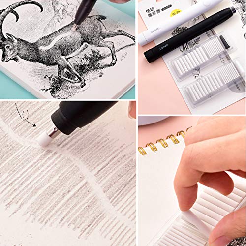Forte capacità di cancellazione - Il movimento circolare e il motore potente consentono di cancellare aree mirate in modo efficace e preciso. Questa gomma elettrica offre una cancellazione precisa e precisa e fornisce una coppia sufficiente per rimuovere segni spessi e ostinati dalla pagina. Rispetto a una gomma normale, può cancellare schizzi e disegni in modo più veloce e pulito.