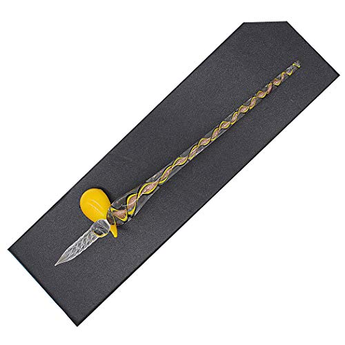 SIPLIV kit penna stilografica penna stilografica dipinta a mano in vetro cristallo a spirale penna per calligrafia vintage con portapenne per regalo di natale, giallo