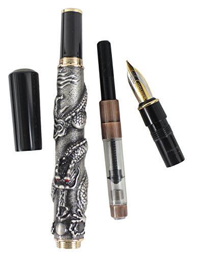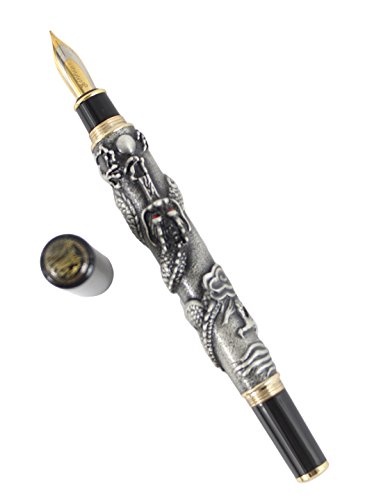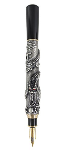 Sipliv penna stilografica orientale drago 3d, media pennino, argento antico