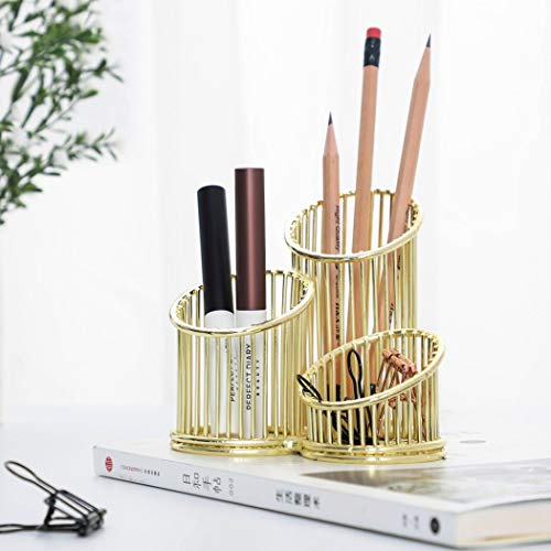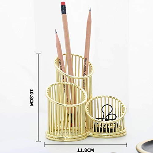 SIPLIV portapenne in ferro battuto dorato portapenne portaoggetti portaoggetti porta pennelli trucco per ufficio aula casa, 3 scomparti