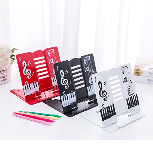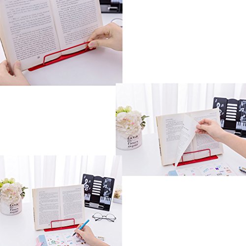 L'uso di acciaio inossidabile di alta qualità, materiali non tossici, vernice ecocompatibile, non può permettersi di dipingere, nessuna ruggine, superficie liscia, colori brillanti, robusto supporto per libri metel e robusta clip per libri, può contenere diversi tipi e dimensioni libri. Sul fondo del piedistallo sono disponibili tappetini antiscivolo, più stabili