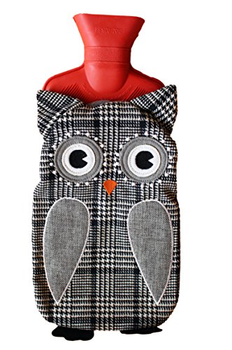 Sippi's homeware Borsa dell'acqua calda foderata (0,8 litro), cuscino del benessere con fodera a tema gufo