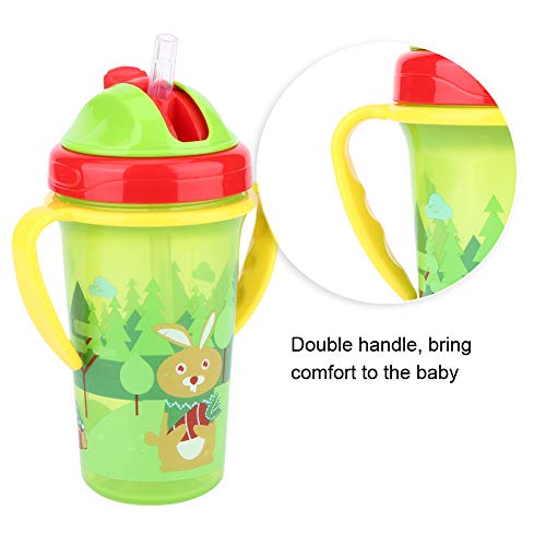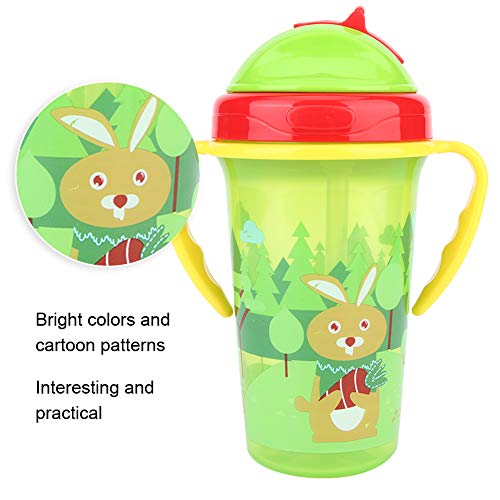 Baby Sippy Cup Paglia Trainer Cup Cute Cartoon Infant Learner Sippy Cup Trasparente Toddlers Water Drinking Cup Borraccia estiva per bambini con manico(Verde)