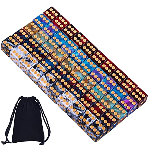 Set di dadi: La confezione include 50 dadi a 6 facce in 5 colori bicolore, 10 pezzi per colore.