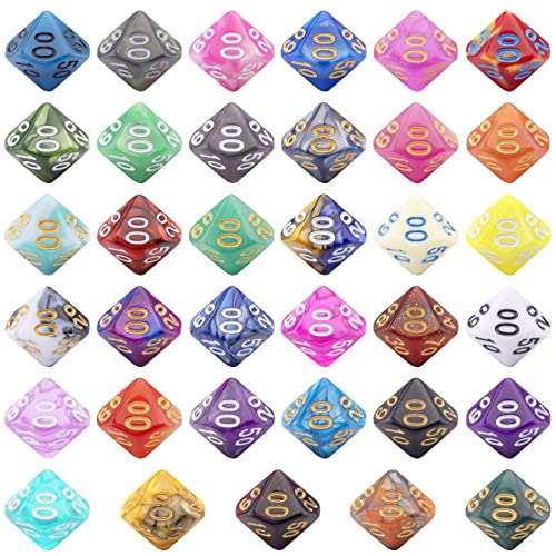 Set di dadi - La confezione include 35 pezzi di dadi a 10 facce (00-90), i colori sono casuali e includono colori solidi, colori trasparenti, motivi perlati e motivi glitterati, senza colori ripetuti;