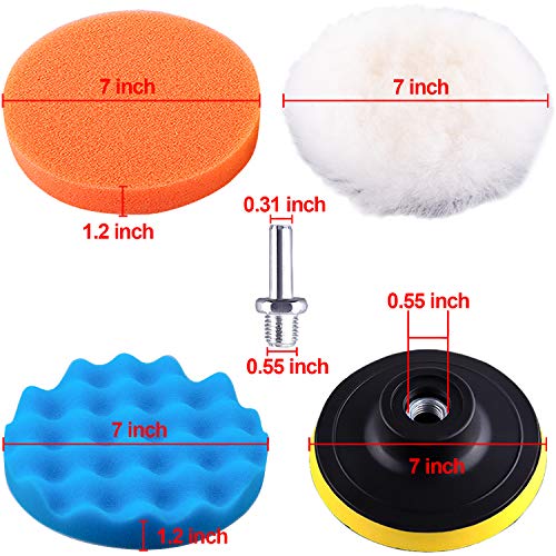 Pratico set di lucidatura - la confezione include 6 pezzi di tamponi di lucidatura in spugna da 180 mm / 7 pollici in 2 forme, 1 pezzo di tampone di lucidatura in lana, 1 pezzo di trapano e 1 pezzo di gancio e anello per anello, 9 pezzi in totale