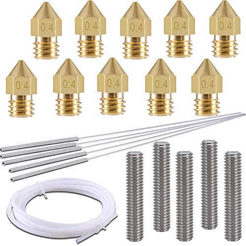SIQUK 10 Pezzi 0,4 mm Ugello Stampa Testine e 10 Pezzi 30 mm Lunghezza Estrusore 1,75 mm Tubo e 5 Pezzi Punte per Trapano e 2m Tubo Teflon di PTFE per MK8 Makerbot RepRap 3D Stampanti