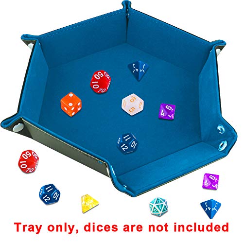 SIQUK Tavola per Dadi, Cuoio Esagonale Pieghevole in PU e Supporto in Velluto Cielo Blu per Dungeons And Dragons Gioco D & D Rpg Dice e Altri Giochi da Tavolo