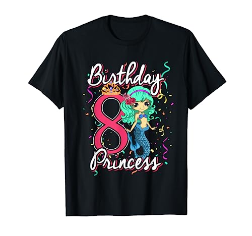 8 Anni Sirena 8 Compleanno Bambina Maglietta