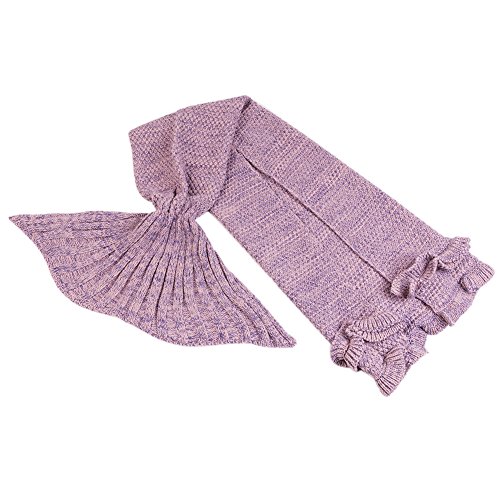 Sirena coda coperta aria condizionata coperta sacco a pelo Slumber sacco fatto a mano in poliestere a crochet modello Seasons Warm Soft Cozy in divano letto soggiorno trapunta Best Birthday Christmas Gift for Toddler Kids adulto, kids pale pinkish gray 53*25.6inch