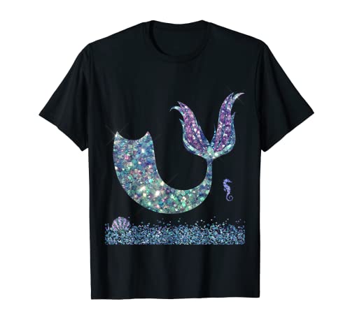 Coda Di Sirena Con Glitter Scintillio Stampato | Mermaid Maglietta