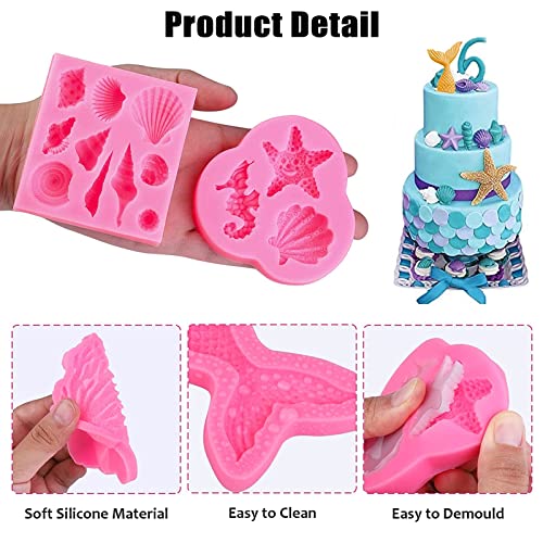 Sirena Stampi in Silicone Stampi del Sirena Coda Sirena Coda Stampi DIY Strumento Silicone animale oceanico 3D Animali Conchiglia Sirena Fondente Per Cuocere Torte Al Cioccolato 6 Pezzi